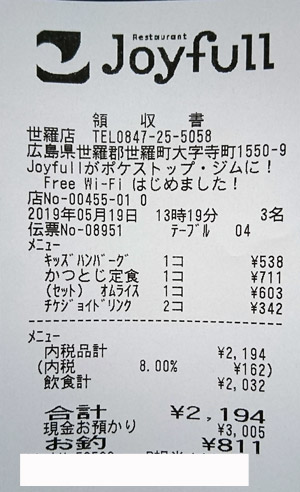 【ジョイフル 世羅店 2019/5/19 飲食 Joyfull】